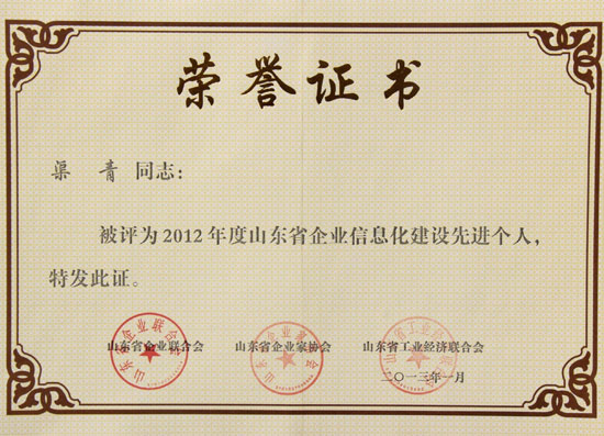 省級榮譽證書