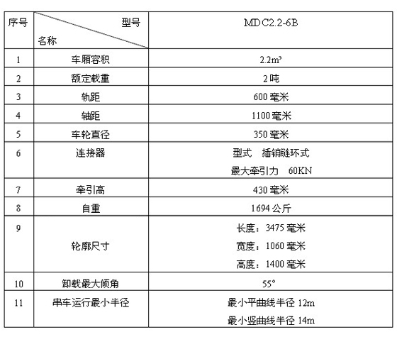 MDSC2.2-6雙門底卸式窄軌礦車適用于井下或地面開采的金屬礦山(或礦石性質及開采方式與其相類似的其他礦山)沿地下巷道及地面工作場地運輸礦石或其他物類。有運行平穩,堅固耐用,維修方便,卸載速度高等特點。