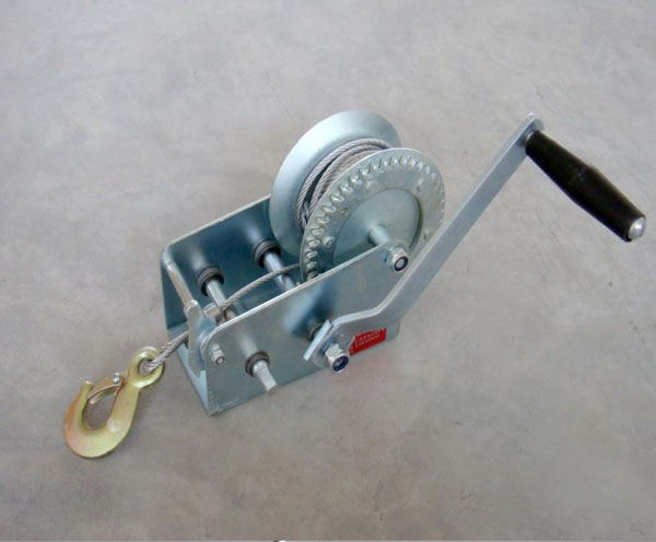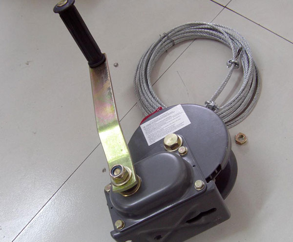 手搖卷揚(yáng)機(jī)(又叫絞車)是由人力或機(jī)械動力驅(qū)動卷筒、卷繞繩索來完成牽引工作的裝置。可以垂直提升、水平或傾斜拽引重物。卷揚(yáng)機(jī)分為手動卷揚(yáng)機(jī)和電動卷揚(yáng)機(jī)兩種?,F(xiàn)在以電動卷揚(yáng)機(jī)為主。電動卷揚(yáng)機(jī)由電動機(jī)、聯(lián)軸節(jié)、制動器、齒輪箱和卷筒組成,共同安裝在機(jī)架上。對于起升高度和裝卸量大工作頻繁的情況,調(diào)速性能好,能令空鉤快速下降。對安裝就位或敏感的物料,能用較小速度。