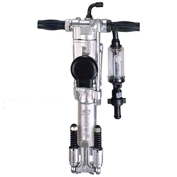 風動鑿巖機主要有氣缸——活塞組件、配氣裝置、鋼釬回轉機構、操縱閥及沖洗——吹風機構等組成。風動鑿巖機在操作時有用人手扶持的,稱為手持式鑿巖機;有利用氣動支腿的,稱為氣腿式鑿巖機;有利用氣動柱架導軌的,稱為柱架導軌式鑿巖機;也有在一臺車架上裝有一至數只鑿巖機的,稱為鑿巖臺車