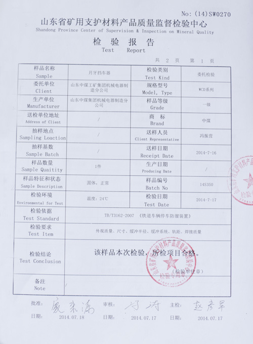 WCD系列月牙擋車器質檢報告