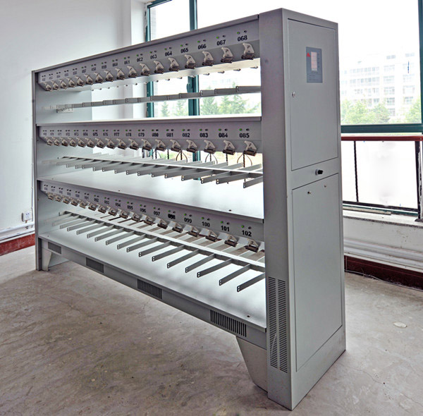 礦燈充電架是供礦燈蓄電池質量電源充電用。該充電架每次可同時充電102只礦燈蓄電池充電終期,充電電流在0.1安培以下,不會過充電。如果礦燈蓄電池暫不使用,可以不下架。各個放電程度不同的礦燈蓄電池都可以隨時上架充電,互不干擾。