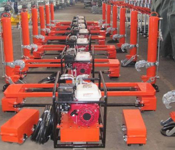 基本配置 一套起道設備配備:內燃液壓泵站7臺,高壓軟膠管28根,單缸液壓起道機14臺,橫移平車14臺,轉向式縱移車7臺。