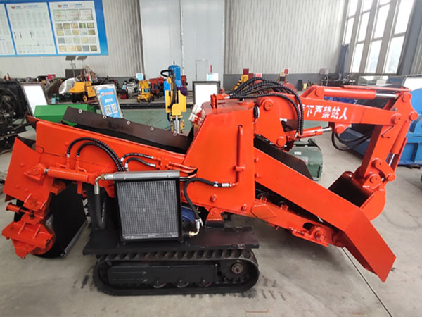 ZWY-120/55L履帶式扒渣機采用電動全液壓傳動,結構緊湊,推進力大,扒取范圍廣,可以全斷面裝巖,不留死角,不需人工輔助清理工作面;煤礦專用履帶式挖掘式裝載機(扒渣機)主要動作采用先導閥控制,操作輕松簡便,工作平穩無沖擊,性能可靠,維修方便;煤礦專用履帶式挖掘式裝載機(扒渣機)具有優良的人性化設計,液壓系統采用風冷,有座椅,有駕駛棚,有行程超限、油溫超高、油路堵塞、電機過載等報警系統,極大地減輕了工人的勞動強度。司機操作本機時安全、輕松、舒適。