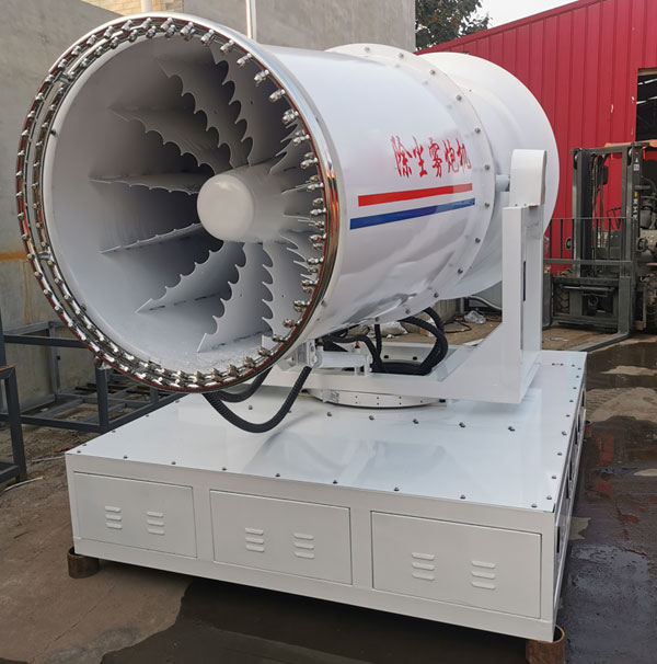 工作效率高、噴霧速度快、射程遠、覆蓋范圍廣、可以實現精量噴霧;噴霧速度快;對容易引起塵埃的堆場噴水除塵時,噴出的霧粒細小、與飄起的塵埃接觸時,形成一種潮濕霧狀體,能快速將塵埃抑制降沉;配套動力靈活,既可用三相380V的市電,也可配套柴油發電機組供電;也可配套柴油發電機組供電安裝在運輸車輛上;可固定安裝在混凝土建筑的平臺上。