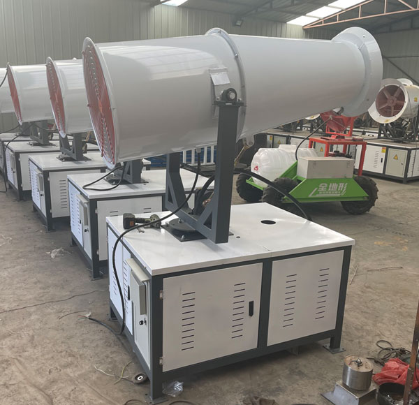 對容易引起塵埃的堆場噴水除塵時,噴出的霧粒細小、與飄起的塵埃接觸時,形成一種潮濕霧狀體,能快速將塵埃抑制降沉;