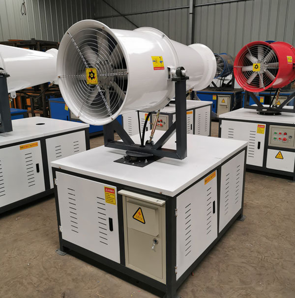 工作效率高、噴霧速度快、可以實(shí)現(xiàn)精量噴霧、射程遠(yuǎn)、覆蓋范圍廣、噴出的霧粒細(xì)小、對容易引起塵埃的堆場噴水除塵時,與飄起的塵埃接觸時,形成一種潮濕霧狀體,能快速將塵埃抑制降沉;