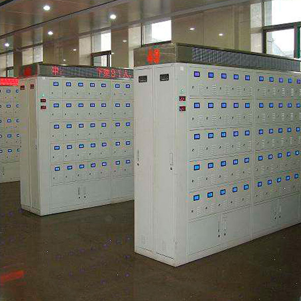 充電架主體1.2mm厚冷扎鋼板,四層掛燈,每層26個獨立工位,架體機械尺寸:長×高×深 =2155*560*1900mm,單個柜體尺寸約18**20*18,可同時將自救器和礦燈置于帶鎖的掛架上,方便燈房超市方式管理,減少燈房人員數量和工作強度。
