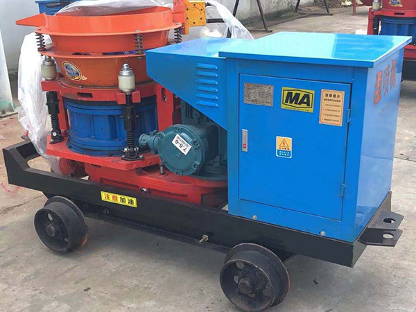 直通轉子式不粘結料腔,出料通暢,省時:四點彈性補償壓緊,密封效果好,機旁粉塵少,易損件壽命長:采用低壓高速渦旋氣流輸送,克服物料輸送中粘結,堵管和脈沖離折等問題,料流均勻,連續穩定:新型噴頭,出料彎頭裝置,改善噴敷效果,回彈少,噴層質量高。機器底盤可以裝配成輪胎式、滑撬式和各種軌距的軌輪式。