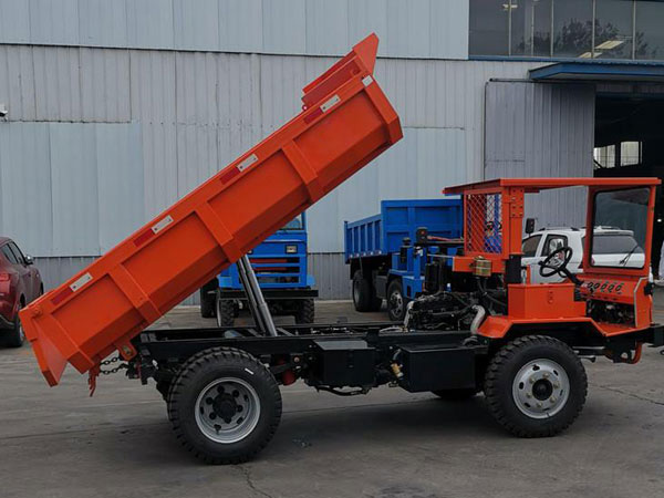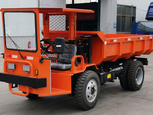 井下自卸車(chē)的車(chē)廂分后向傾翻和側(cè)向傾翻兩種,通過(guò)操縱系統(tǒng)控制活塞桿運(yùn)動(dòng),后向傾翻較普遍,推動(dòng)活塞桿使車(chē)廂傾翻,少數(shù)雙向傾翻,高壓油經(jīng)分配閥、油管進(jìn)入舉升液壓缸,車(chē)廂前端有駕駛室安全防護(hù)板。井下自卸車(chē)所有配置均可按照客戶(hù)要求定做,以適應(yīng)不同巷道、不同環(huán)境、不同坡度下使用。