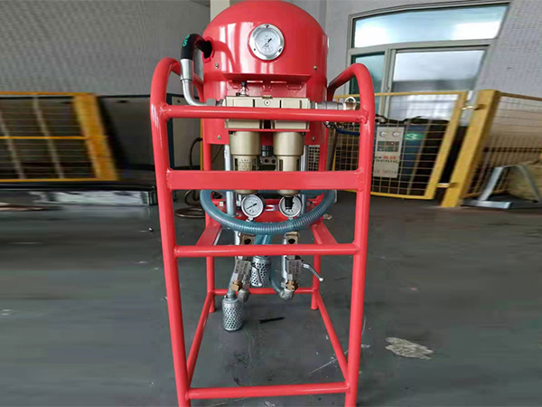 煤礦用氣動雙液注漿泵以壓縮空氣為動力源,由于氣缸和注漿缸具有較大的作用面積比,從而以較小的氣壓便可使注漿缸產(chǎn)生較高的注漿壓力。