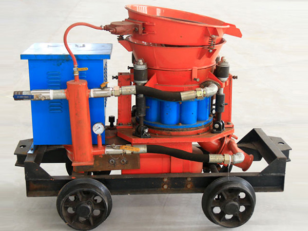 濕噴機是用于濕式噴射混凝土的設備,與干、潮噴機相比,它具有作業粉塵小、噴射回彈少、保護工作環境、節省原材料、提高噴層質量等顯著優勢,而且操作維護方便。特殊的振動料斗能使濕混凝土混合料順利進入轉子料腔;