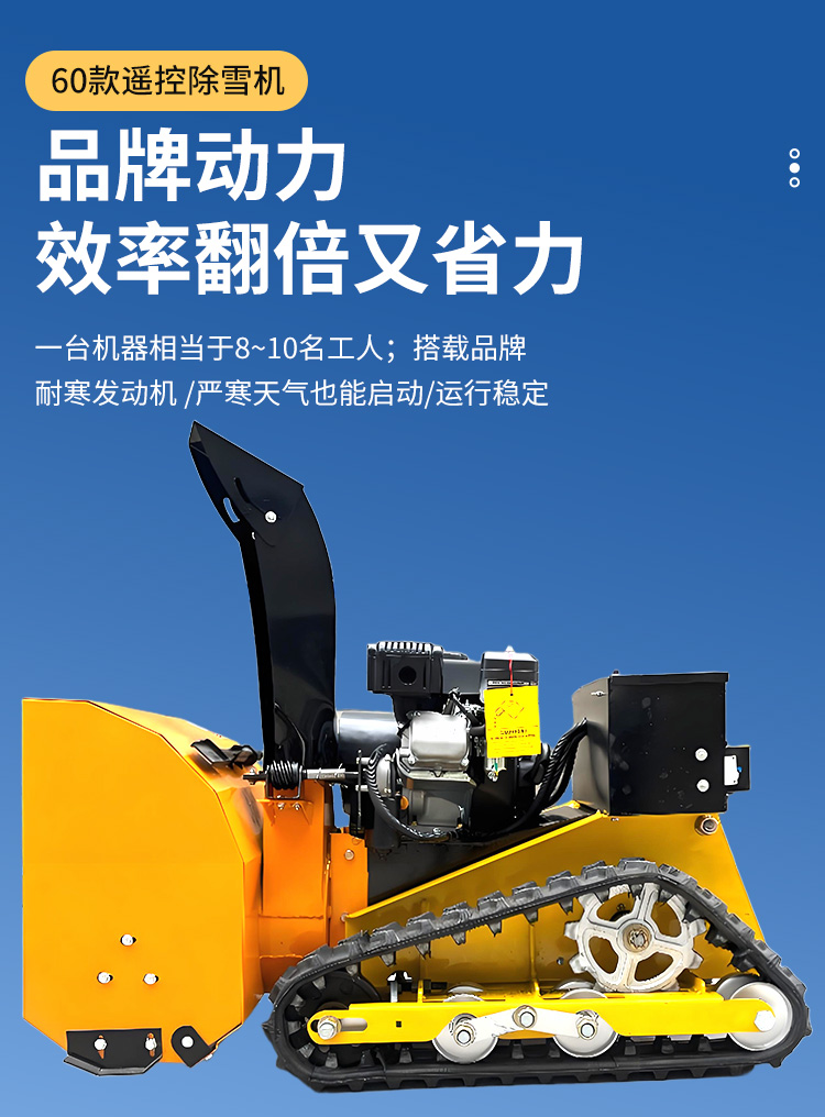 60款遙控除雪機:鏟雪除霜不傷道路、強力發動機、螺旋滾刷片、靈活使用、操作簡單、防滑履帯、減震降噪.