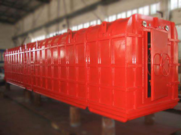 現國內礦山安全避險無很好的措施。為在很好保護災變發生后人員安全,設計一種鋼結構救生艙,艙內配置飲用水和食物。用于礦難發生后的緊急避難,放置于礦山井下作業面附件。在遇險人員無法撤離危險區域時可以迅速躲進救生艙,救生艙無需外部能源補給,就可以為幸存人員躲避有毒有害氣體、濃煙煙塵及氧氣缺乏等危害,提供一段時間的生命生存保障。對于挽救井下幸存人員的生命具有積極而重大的意義。