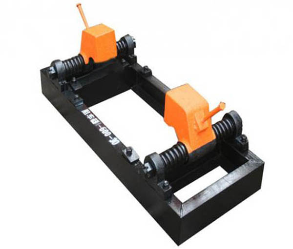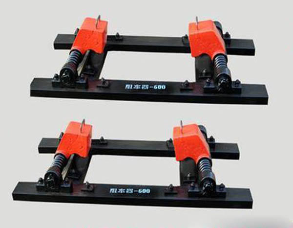 雙軌阻車器由兩根平行的固定支座和阻車桿、前支承座、后支承座及腳踏連動裝置組成
