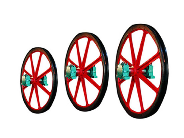 繩槽帶塑襯或膠塊,可以增加鋼絲繩的使用壽命;主要用于立井提升及斜井箕提升。立井天輪和鑿井天輪的輪體只作旋轉運動。 立井天輪是安裝在井架上,起支撐作用的天輪。